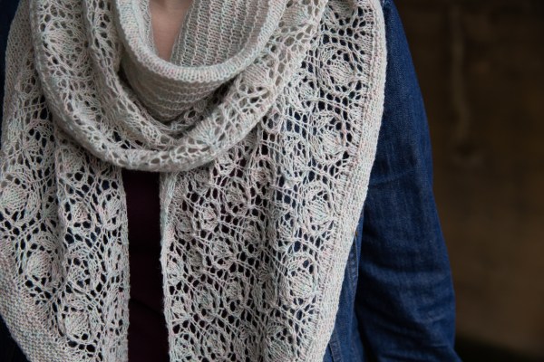 This shawl is a narrow crescent that’s nice and long. This means it’s very easy to wear as a scarf. This is the sort of shawl that I tend to be most comfortable wearing day-to-day, as it simply wraps around and looks great without any fussing required.