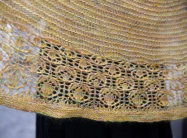 Designing lace is always a bit of a journey. I think the Posy shawl started with a round lace pattern from Barbara Walker’s Treasuries (but I’m not 100% sure). From that starting point I swatched and tested many iterations. I imagined a field of flowers, some with buds tightly closed, then enlarging with the vivacious living energy of spring and sunlight, until they burst open into the beautiful organic shapes of blooms.